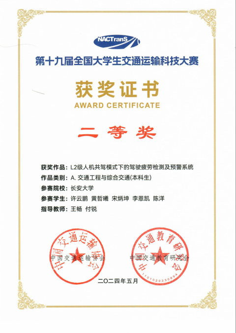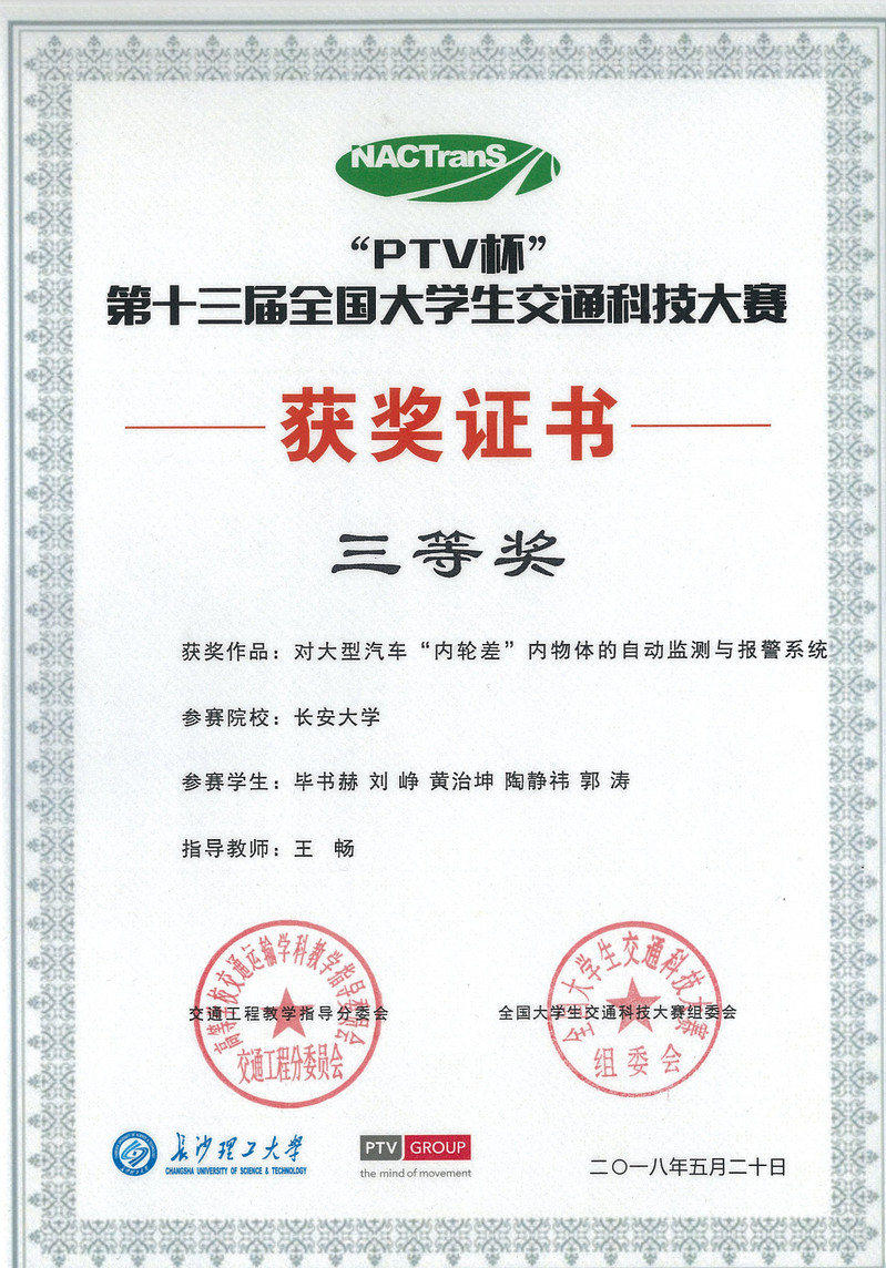 全国大学生交通科技大赛(NACTranS)是在教育部高等学校交通运输类教学指导委员会支持下,由交通工程教学指导分委员会主办的全国性大学生科技竞赛。该项大赛是国内第一个由诸多在交通运输工程领域拥有优势地位的高校通力合作促成的大学生学科竞赛,是一个以大学生为主体参与者的全国性、学术型的交通科技创新竞赛项目。