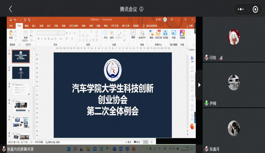 大学生科技创新创业协会于线上召开第二次工作例会。本次例会由办公室干事尹楠主持。