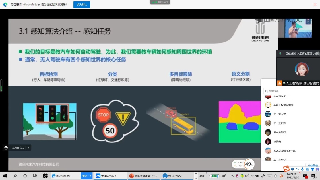 通过主题课堂,将课程内容与智慧交通、自动驾驶等前沿技术联系,将学生从课堂学习带到科学研究第一线,使学生从教学课堂走向学术殿堂,激发学生创新能力和学习动力。其中“商用车自动驾驶感知算法研究”课程已于2022年8月29日正式上线(中国大学MOOC和学堂在线慕课《单片机原理与汽车微机应用技术》),这一课程向同学们介绍了商用车自动驾驶环境感知系统,以及公司最新的感知算法研究成果,该课程已向公众开发,我校相关专业同学已踊跃注册报名学习。后续两个课程也会在本学期上线!