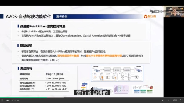 “多场景全工况自动驾驶大脑关键技术”课程中,张德兆董事长不仅介绍了智行者公司自研的多场景自动驾驶大脑技术架构,包括硬件计算平台、车端软件操作系统、云端数据中心。还介绍具体的关键技术,包括涵盖感知、建图、定位、规控核心算法,包括PointPillars激光检测算法、视觉多任务共享backbone和FPG的网络结构模型、多传感器融合建图定位方案等产品开发中应用的新技术,并对数据闭环平台、图形化软件开发平台进行介绍和演示,最后针对自动驾驶量产应用的解决方案,对高速公路、城市道路自动驾驶的智能巡航、自主换道、上下匝道、路口通行、转让避让等场景应用进行介绍和演示。