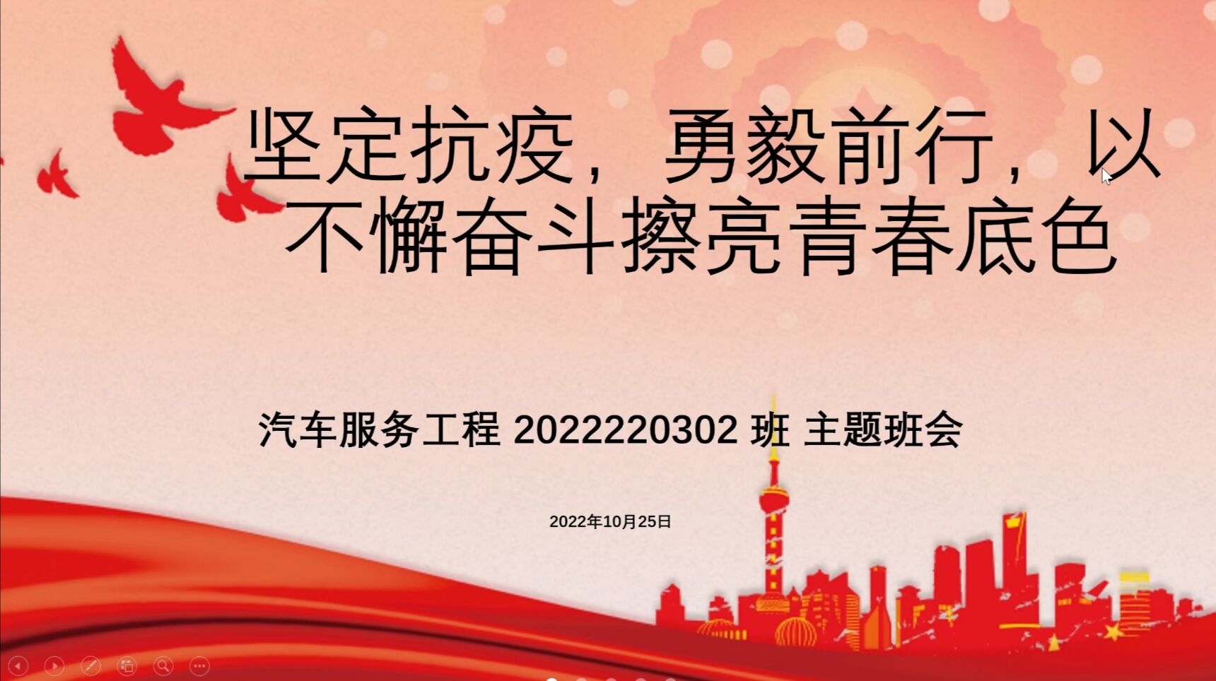 “云天收夏色,木叶动秋声。”2022年10月25日,无限动漫 2022级汽车服务工程二班通过腾讯会议形式召开“坚定抗疫,勇毅前行,以不懈奋斗擦亮青春底色”主题班会,学生办公室主任郑文捷及班级全体同学参会,班主任张凯超主持。