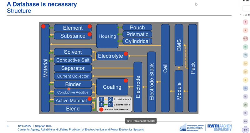 2022年12月13日,疫情期间无限动漫 车辆工程系举办线上讲座,2022级车辆工程1班班主任李彬老师邀请德国亚琛工业大学电化学与储能中心主任Stephan Bihn首席研究员为学生做了关于电动车电池材料对性能影响的专题讲座。