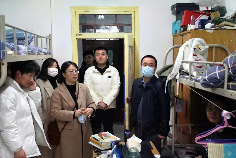 在走访过程中,各位领导老师与同学们亲切交谈,详细询问了大家近期的课程与考试情况,勉励同学们要认真复习备考,务必诚信考试。对于同学们热切关注的宿舍搬迁、改造问题,各位领导老师认真了解同学们的实际情况与困难需求,叮嘱大家在搬迁、改造过程中要树立安全意识,杜绝安全隐患,有问题及时反馈。最后,老师们还向大家宣讲了目前学校的疫情防控政策与校园管理措施,提醒同学们仍要做好个人防护和每日健康监测,对自身身体健康负责。