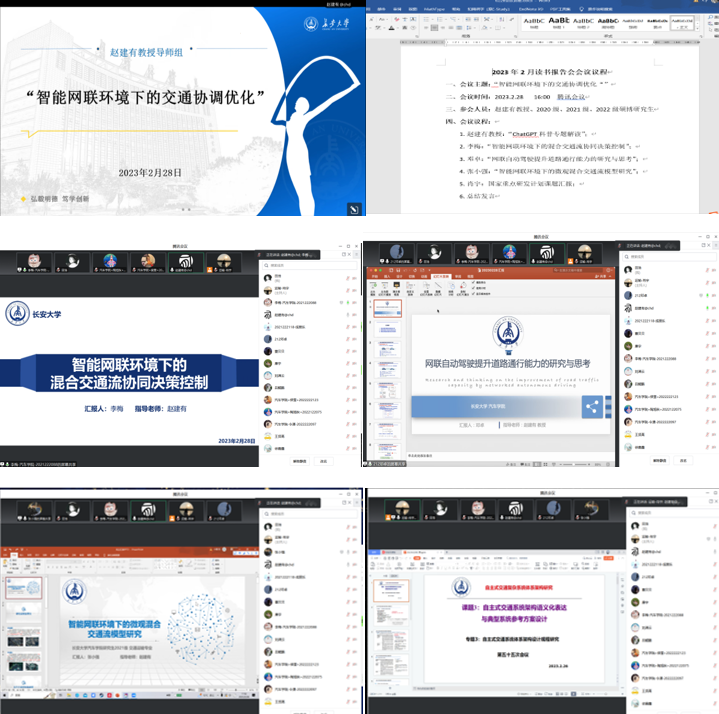 2023年2月28日下午16:00,赵建有教授导师组“智联网环境下的交通协调优化”专题读书报告会于线上举行,会议由赵建有教授主持,导师组全体成员参加。