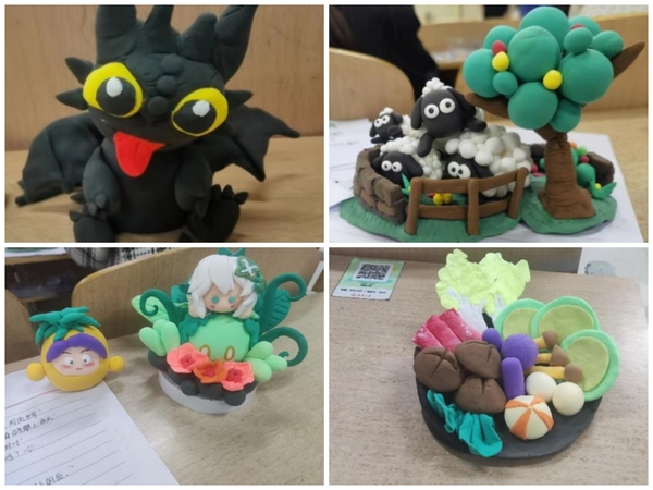此次活动要求参与者在规定时间内自由创作泥塑作品,各位同学充分发挥自己的奇思妙想,沉浸于制作过程之中,感受着全身心的放松。每一件作品都是参与者精心设计的杰作。制作结束后,进行了展览与评选环节,同学们交流创意、进行了热烈的讨论,现场投票评选出优秀作品。