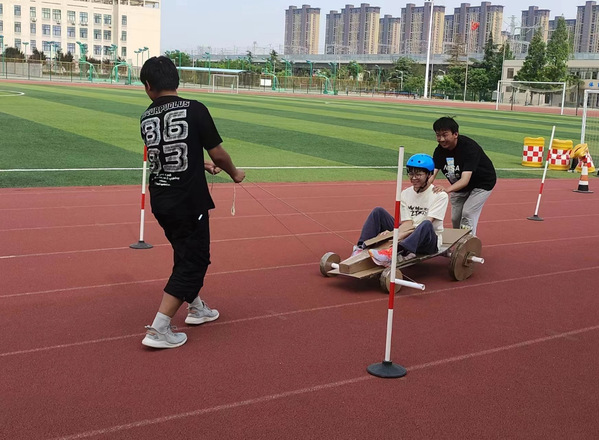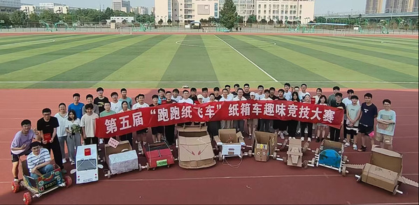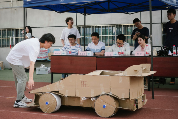 活动前期宣传中,来自各学院学生团队积极报名参加,经线上作品评选,最终有10支队伍进入决赛。各队选手依靠用瓦楞纸板和pvc管制作而成的车来进行各项竞赛。活动共分为两项环节,分别以外观设计、速度竞赛方面测验了纸箱车的性能与学生团队的合作能力。第一项为创意赛,各参赛队伍向评委老师介绍本队作品的创作理念,评委老师分别从美观性、结构性、创新性三方面进行打分。第二项为趣味竞速赛,每支队伍在50米长的障碍赛道上进行竞速。本次比赛全方面地考量纸箱车的性能与学生团队的合作能力。