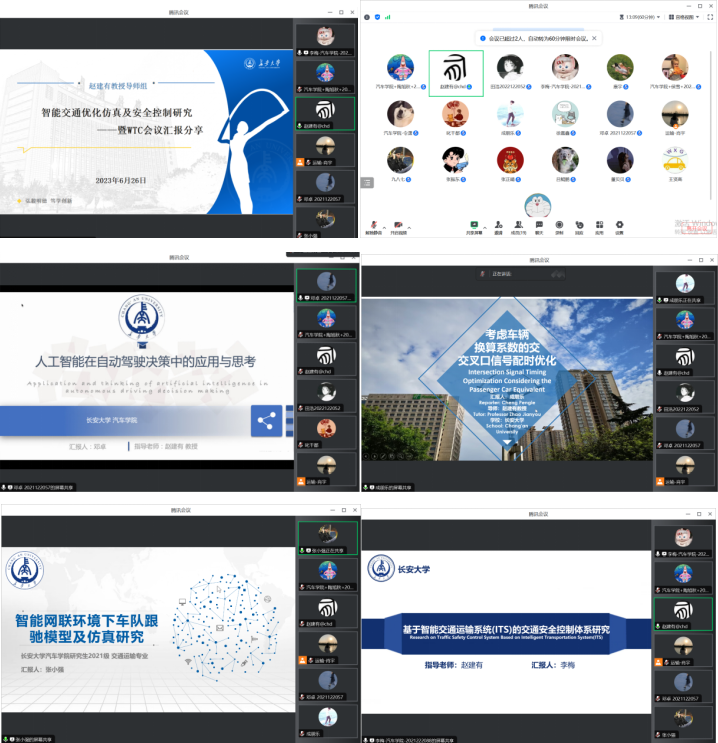 2023年6月26日下午15:00,赵建有教授导师组“智能交通优化仿真及安全控制研究暨WTC会议汇报分享”于线上举行,会议由赵建有教授主持,导师组全体成员参加。