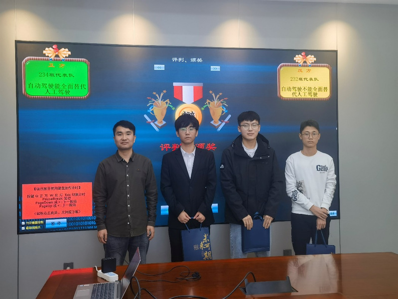 比赛一开始,正、反方开篇立论,思路清晰,准确抓住辩题的核心问题,围绕自动驾驶与人工驾驶的优劣势,为现场观众奉上了一场精彩刺激的辩论盛宴,赢得了现场观众的热烈掌声。最终无限动漫 2023级研究生“新生杯”专业辩论赛决赛获胜队伍为232班代表队,最佳辩手为234班李宁同学。