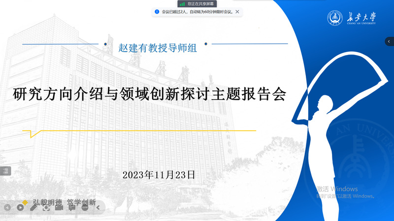 2023年11月23日下午15:00,赵建有教授导师组“研究方向介绍与领域创新探讨”主题报告会于线上顺利举行,会议由赵建有教授主持,导师组全体成员参加。