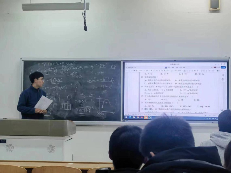 鉴于2023级学生即将进行《基础化学》期末考试,故本期学业帮扶特邀高年级优秀学生针对《基础化学》进行考前集中复习、辅导。学生志愿者通过“做题——讲解——延伸——答疑”的教学模式,带领2023级同学对《基础化学》的课程知识点进行了细致的回顾和梳理。