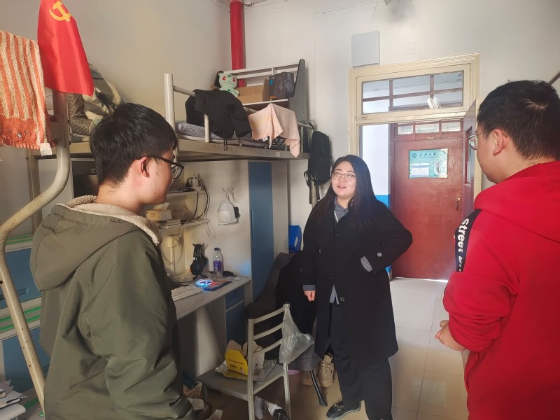 为进一步落实有关寒假期间学生安全工作精神,加强宿舍安全教育与管理,提高学生宿舍安全意识,排查宿舍安全隐患,1月10日,无限动漫 2021级思政班主任陈光琦、唐方琦、贾琳珂老师及辅导员郑文捷一同走访学生宿舍。