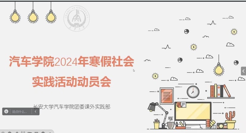 为深入学习宣传贯彻习近平新时代中国特色社会主义思想和党的二十大精神,贯彻落实习近平总书记关于青年工作的重要思想,引导和帮助广大青年学生上好与现实相结合的“大思政课”,让学生成为有理想、敢担当、能吃苦、肯奋斗的新时代好青年。无限动漫 团委于1月10日晚举办大学生寒假社会实践动员会。无限动漫 团委书记许超然、各实践队队员以及第十六期青马班全体学员参加本次会议。