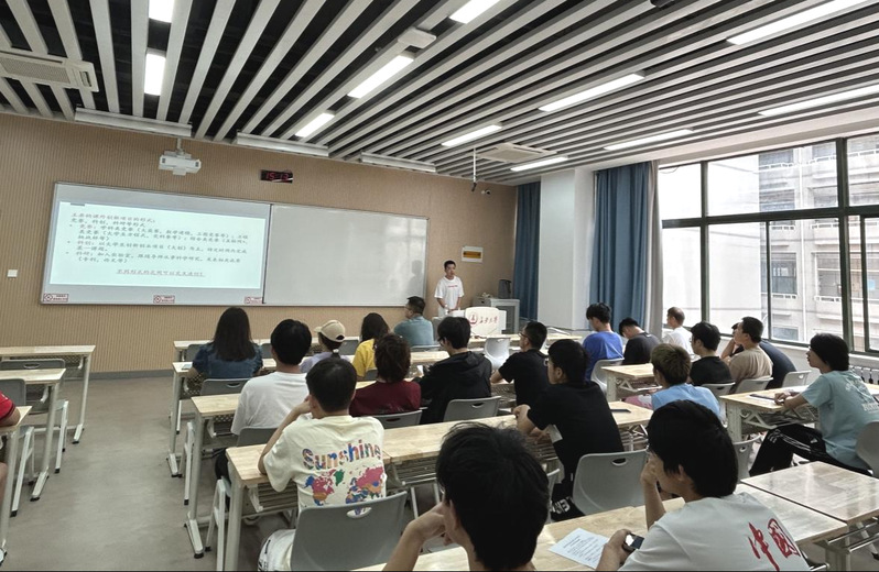 在会上,冯峻良首先强调了大学与高中的区别在于大学之“大”,要有自己明确的目标和生涯规划才能不迷失方向,还要找到属于最适合自己的选择,尽早为未来做准备。他通过自己大学四年的成长经历动员同学们主动探索,寻找自己喜欢的方向。最后,冯峻良强调了学业成绩的重要性,鼓励同学们增强自学能力,不断提升自身的硬实力与软实力。