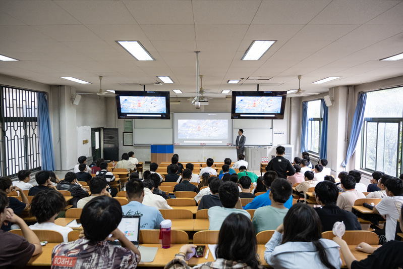 在提问环节中,同学们踊跃提问,涉及特斯拉的技术创新、未来发展规划、人才培养等多个方面。刘泽玉耐心细致地回答了每个问题,并与同学们进行了深入的交流和互动,现场氛围热烈而融洽。
