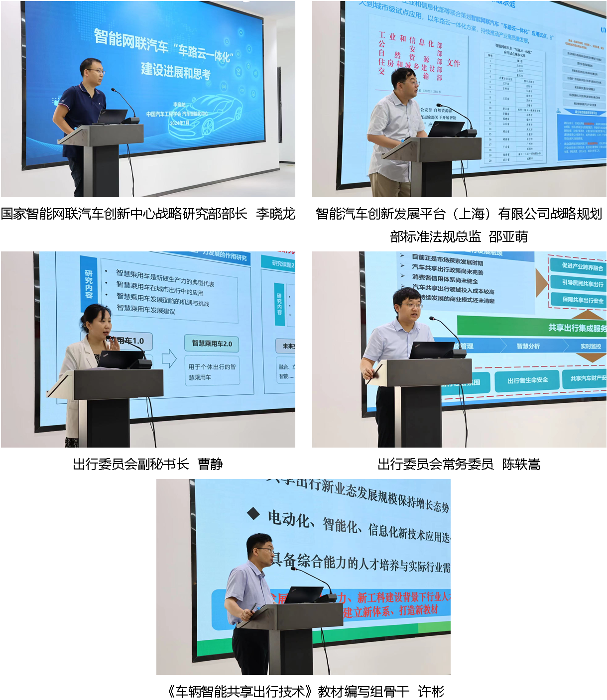 在主题演讲环节,国家智能网联汽车创新中心战略研究部部长李晓龙、智能汽车创新发展平台(上海)有限公司战略规划部标准法规总监邵亚萌分别作了《智能网联汽车“车路云一体化”建设进展和思考》《智能汽车未来出行在上海的探索与实践》主题演讲。在工作汇报环节,出行委员会副秘书长曹静介绍了出行委员会2024年上半年工作总结与下半年重点工作计划。在会议报告环节,出行委员会常务委员陈轶嵩对《中国智能共享出行发展报告(2023-2024)》初稿内容进行汇报,《车辆智能共享出行技术》教材编写组骨干许彬对教材的编写情况进行汇报。在研讨交流环节,徐亚华总工、马建教授作引导发言,针对汽车智能共享出行工作委员会的下一步重点工作、《中国智能共享出行发展报告(2023-2024)》初稿内容、《车辆智能共享出行技术》教材编写,与会代表进行了研讨发言和交流,提出了建设性的意见。