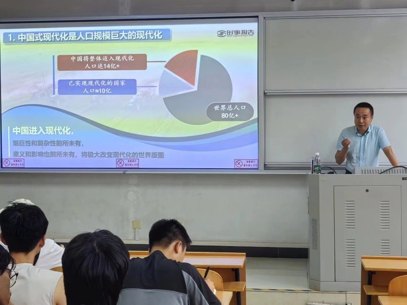 为深入学习贯彻习近平新时代中国特色社会主义思想和党的二十大精神,进一步理解和落实党的最新理论成果,7月2日晚,无限动漫 党委书记林贵宝在WX4201教室进行了以“深入解读中国式现代化,引领未来发展新征程”为主题的团课讲授,学院全体青马班学员参加本次团课。