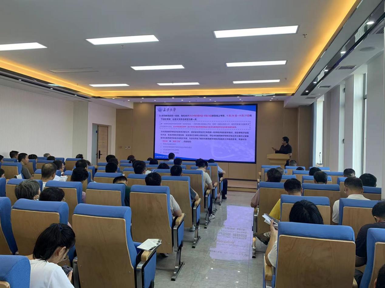陈轶嵩就本科教育教学审核评估专家考查工作做工作安排。他详细介绍了新一轮审核评估工作的指导思想、基本原则、工作方针、主要形式和内容,对学校本科教育教学审核评估报告中学校概况、质量保障能力、本科教育教学整体情况及改革进行深入解读,对本科教育教学审核评估涉及的核心概念、工作要点和注意事项进行了强调。结合学校工作安排和学院实际情况,对学院本科教育教学审核评估工作做出具体安排。