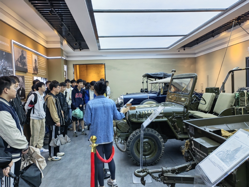在世界交通发展史与中国交通发展史板块,跟随讲解员的讲解,同学们从西周“天子六驾”、秦朝“秦直道及铜车马”、汉代“丝绸之路”、唐代“万邦来朝”以及宋元明清时期交通发展的演变一路参观至凯尔西M型车、福特T型车、威利斯军用吉普车等历史创奇车型,深刻了解到不同时期交通产业对世界文明发展产生的巨大影响,将课本中学到的汽车发展知识与实物联系了起来。当参观至1965年由长春第一汽车制造厂自主生产的红旗CA770时,大家内心涌起了无比的民族自豪感,纷纷表示要刻苦努力学习,争做交通强国的后备军。