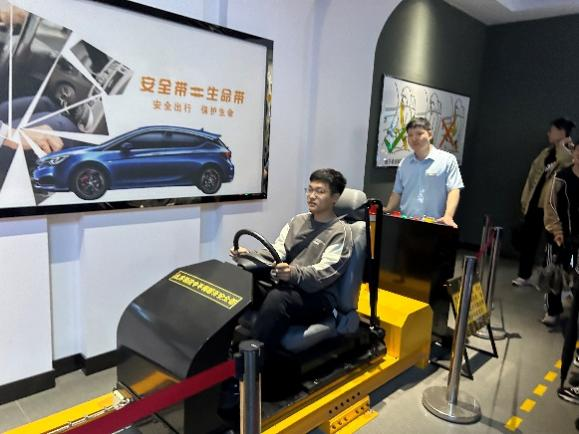 随后,同学们又参观了在公安部交通安全科研所指导下建设的安全教育警示馆,大家通过VR体验、模拟场景等方式学习了真实的交通事故案例、车辆损毁状况和事故原因,亲身感受到疲劳驾驶、酒驾等各种交通违法行为可能带来的危害后果,帮助同学们有效树立了交通安全意识。