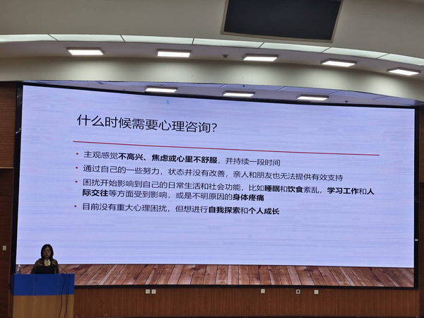 郭老师以《心理咨询是不是智商税》为题开展具体讲座内容。她实际案例出发,明确了心理咨询的定义和范畴,阐述了心理咨询的主要功能,当人们面临压力、焦虑、抑郁等情绪问题时,心理咨询师可以提供一个安全、支持和理解的环境,帮助人们有效地应对和管理这些情绪。她通过互动引导同学们对心理咨询形成正确的认识,心理咨询作为一种专业的心理健康服务,可以通过专业的知识和技能,帮助人们解决各种情绪、心理和行为问题。它并非所谓的“智商税”,而是一种对个人心理健康的投资。