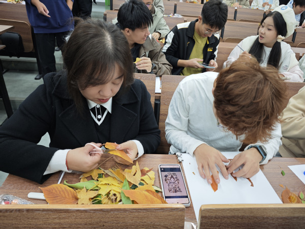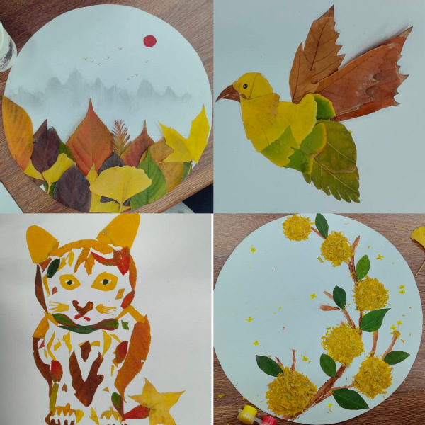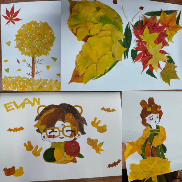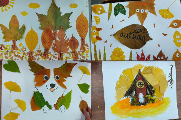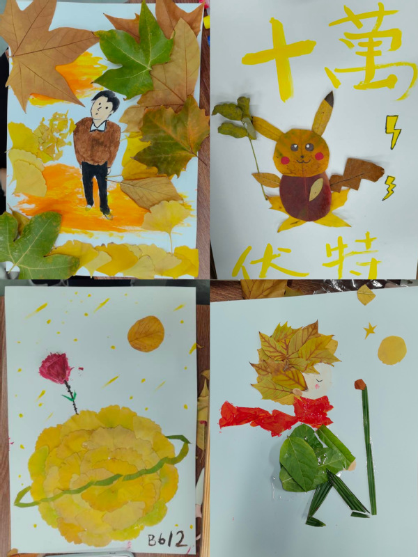 在随后的创作环节中,同学们纷纷施展才华,巧妙地将落叶与绘画工具相结合,通过剪裁、拼贴、绘制等多元化的艺术手法,将一片片落叶幻化为充满创意与艺术魅力的元素,精心组合成一幅幅风格独特、情感饱满、构思精巧的落叶画作品,生动地将内心的情感与感悟转化为可视化的艺术语言。