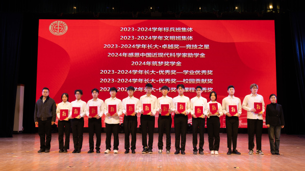 受邀出席大会的王建伟副校长、各企业领导及学校职能部门领导依次上台为受表彰的学生代表颁奖并合影留念。
