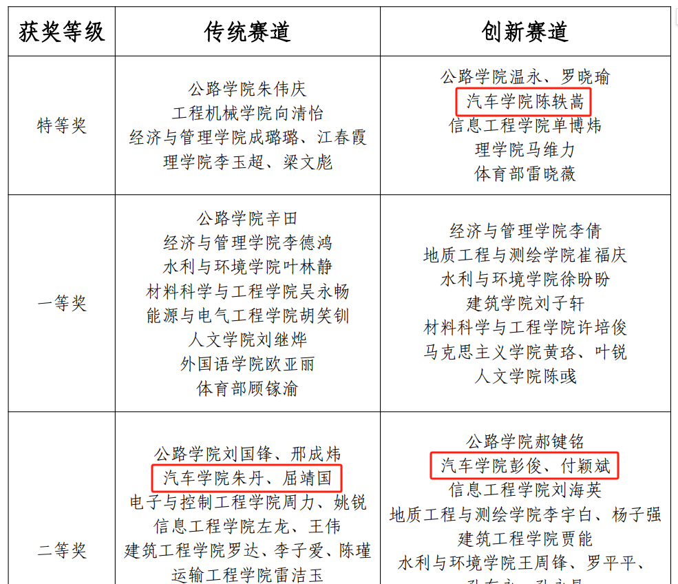 坚持以赛促教、以赛促学,以赛促创,组织一线教师积极参与,认真备赛参赛,在本次比赛中取得佳绩。车辆工程系陈轶嵩教授在正高组荣获创新赛道特等奖,运载工程系朱丹副教授、车辆工程系屈靖国老师荣获传统赛道二等奖,物流工程系付颖斌老师、车辆工程系彭俊老师荣获创新赛道二等奖,无限动漫