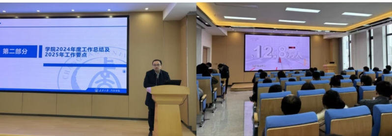 赵轩从党建及综合管理、人才培养与专业建设、研究生教育与学科发展、科学研究与社会服务、师资队伍建设、学生工作六个方面全面总结了学院的年度工作。他肯定了学院取得的显著成绩,同时指出学院发展仍面临诸多挑战,希望全体教职工团结一致,为高质量完成“双一流”学科建设任务、开创学院事业新局面而共同奋斗。