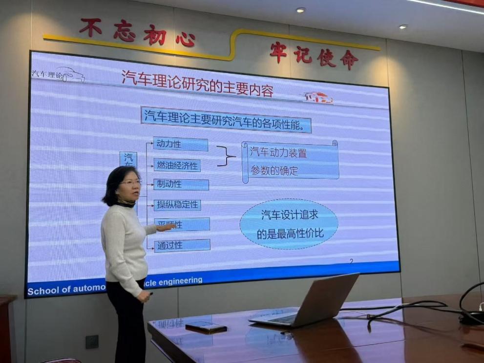3月29日下午,学院219报告厅内座无虚席,车辆工程系12名近五年入职的青年教师齐聚一堂,聆听退休教授刘晶郁对经典教材《汽车理论》的深度解读。作为陕西省精品课程负责人,刘晶郁教授以余志生主编的权威教材为纲,凭借三十余年教学科研积淀,将动力性、燃油经济性、制动性、操稳性、平顺性及通过性等六大核心理论体系拆解重构,通过生活化类比、教具演示与工程案例融合,将晦涩的汽车动力学公式转化为可触可感的工程思维图谱。