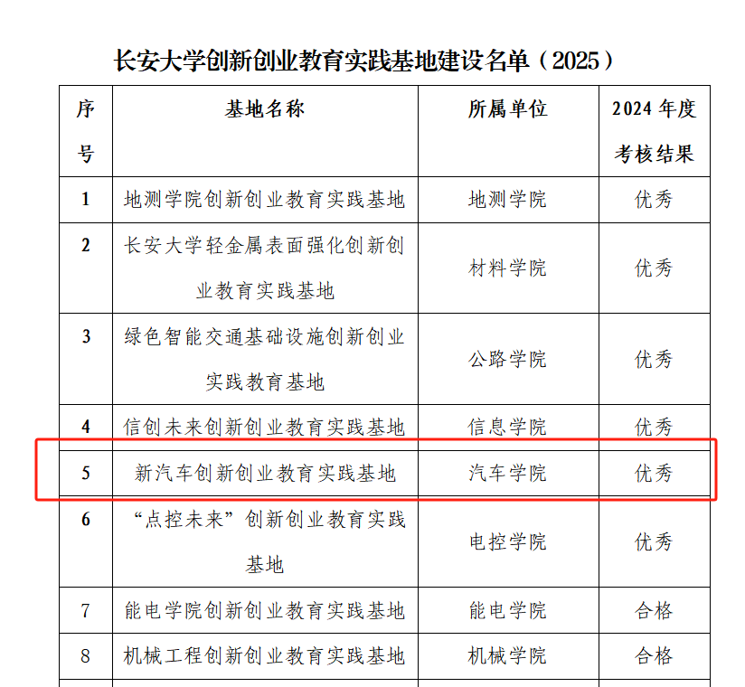 根据教务处、创新创业学院发布的《关于公布2025年度无限动漫 校级创新创业教育实践基地建设名单和2024年度考核结果的通知》,无限动漫 “新汽车创新创业教育实践基地”在2024年度考核中获评优秀等次。