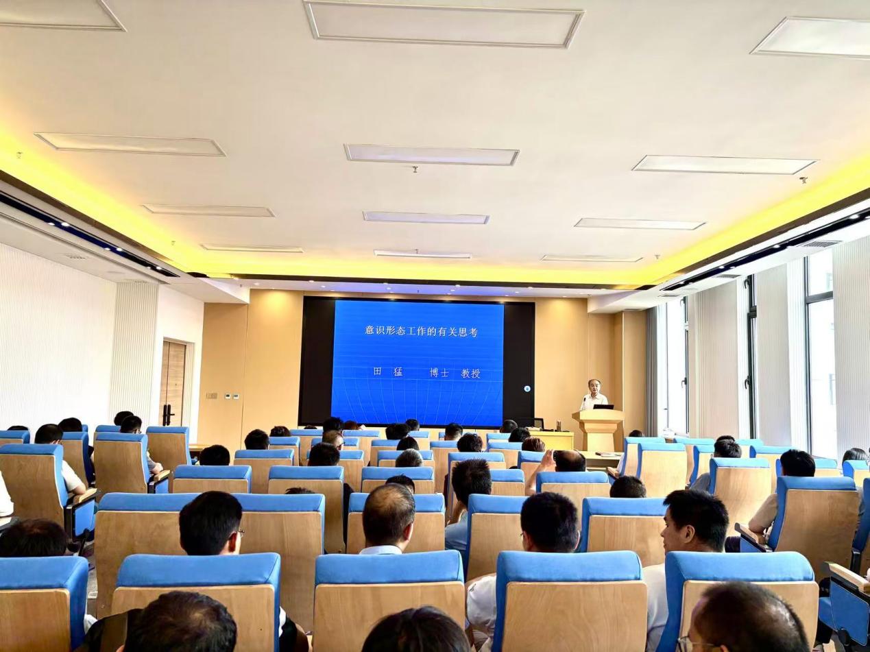 田猛教授以《意识形态工作的有关思考》为题,从意识形态的内涵、意识形态工作重要性的原因及个人认识三个方面展开讲解。他以中外历史事件、社会热点问题为例,讲述了意识形态工作对于巩固党的执政地位,维护国家长治久安,实现中华民族伟大复兴,调动群众积极性、主动性与创造性的重要作用。最后,他从严守意识形态阵地,提高意识形态风险防范化解能力等方面分享对意识形态工作的思考,强调做好意识形态工作要深刻认识到人民群众在意识形态工作中的主体地位和首创精神,牢记“江山就是人民,人民就是江山”。