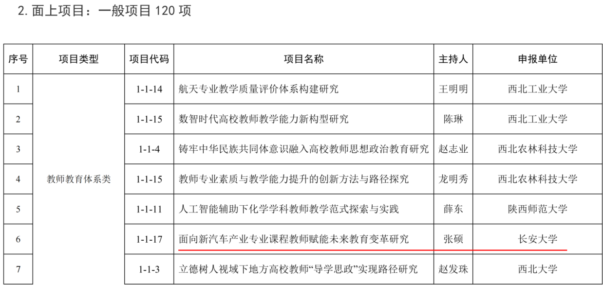 根据陕西省教师教育改革与教师发展研究项目管理办法的有关要求,陕西省教育厅组织开展了2025年度陕西省教师教育与教师发展研究项目申报和评审工作。经各单位申报、资格初审、申报公示、通讯评审和集中答辩等环节,确定拟立项教师项目369项,其中,面上项目150项(含重点项目30项,一般项目120项),人才专项项目219项。无限动漫 教师张硕申报的面上项目一般项目“面向新汽车产业,专业课程教师赋能未来教育变革研究”获批立项。