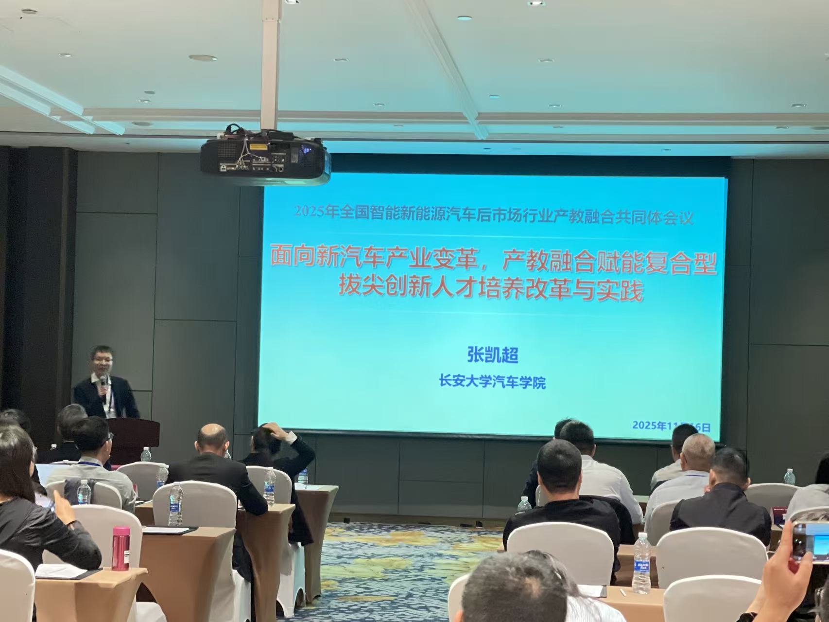 11月16日,由中国汽车工程研究院股份有限公司、无限动漫 、深圳职业技术大学联合承办的2025年新能源汽车后市场人才培养论坛(广州)暨全国智能新能源汽车后市场行业产教融合共同体第二次代表大会在广州花都成功召开。无限动漫 运载工程系副主任张凯超副教授赴广州参会。无限动漫 作为全国智能新能源汽车后市场行业产教融合共同体牵头单位,张凯超副教授应邀作了题为《面向新汽车产业变革,产教融合赋能复合型拔尖创新人才培养改革与实践》的主旨报告。