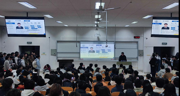 在互动环节,同学们围绕学业规划、竞赛准备等实际问题踊跃提问。郑志旻结合自身经历一一作答,建议同学们先夯实专业基础,再循序渐进参与科研竞赛,并鼓励大家积极参与学校的创新训练计划,在实践中提升综合能力。