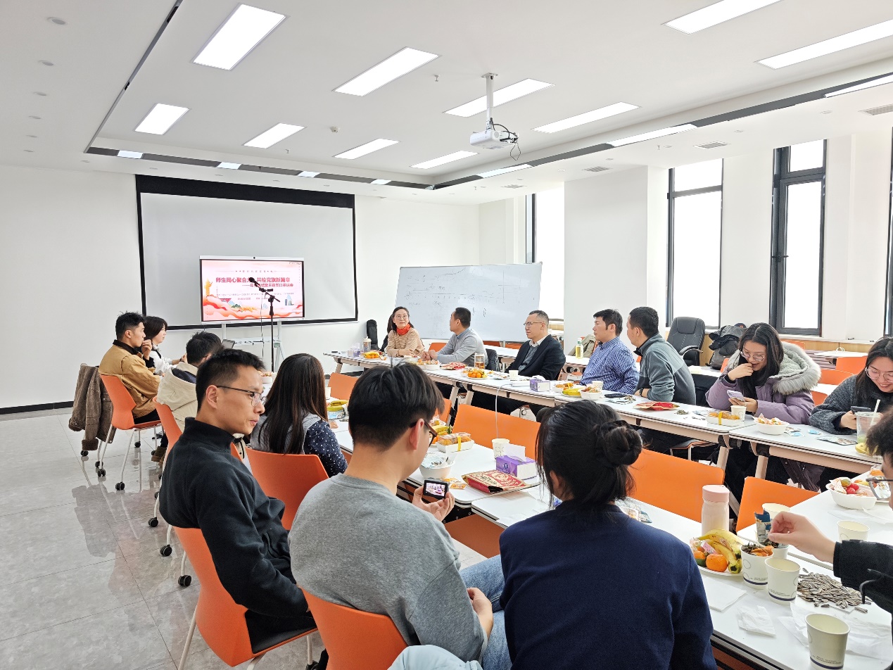 活动在支部书记付锐同志的开场发言中拉开帷幕。付锐结合自身出访考察经历与线上课程录制心得,鼓励师生“以脚步丈量世界,以思考沉淀智慧”,在科研创新与日常生活中保持敏锐观察力与总结能力。随后,学院党委书记林贵宝回顾了师生联合党支部的成立初心,从省级样板党支部申报经验到年度工作亮点,系统梳理了支部在组织建设、思想引领、服务师生等方面的创新实践。他强调,党建与业务融合的关键在于“实”,要始终以师生需求为导向,让党旗在学科科研育人一线高高飘扬。